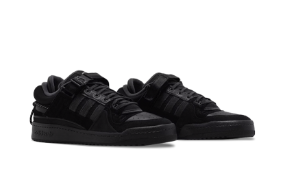 The adidas Forum Low x Bad Bunny "Back to School" combine classic basketball style with Bad Bunny's bold touch. Made from premium leather, suede overlays, and the iconic velcro strap, they stand out with their sleek monochromatic black color. Subtle Bad Bunny branding details and a unique design make them ideal for everyday wear, blending comfort, durability, and urban style. Perfect for fans of the artist and urban fashion.