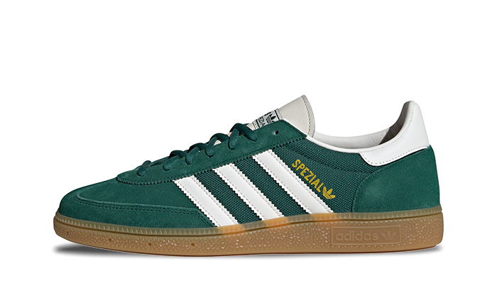 The Adidas Handball Spezial Green White Gum combine a retro design with comfort and style. With their green suede upper, iconic white three stripes, and gum sole, they offer a classic look inspired by indoor sports. Perfect for everyday wear, they stand out for their versatility and sporting heritage.