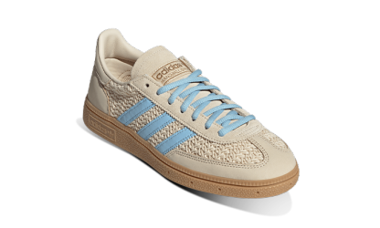 Discover the Adidas Handball Spezial in Sand Strata and Clear Sky colors, a classic silhouette that combines sports heritage with urban style. Inspired by indoor footwear from the 70s, these sneakers feature a premium suede upper in beige sand and sky blue tones, a retro-style rubber sole, and the iconic 3-stripe branding. Perfect for everyday wear, they offer a casual and versatile look with a vintage touch that never goes out of style.