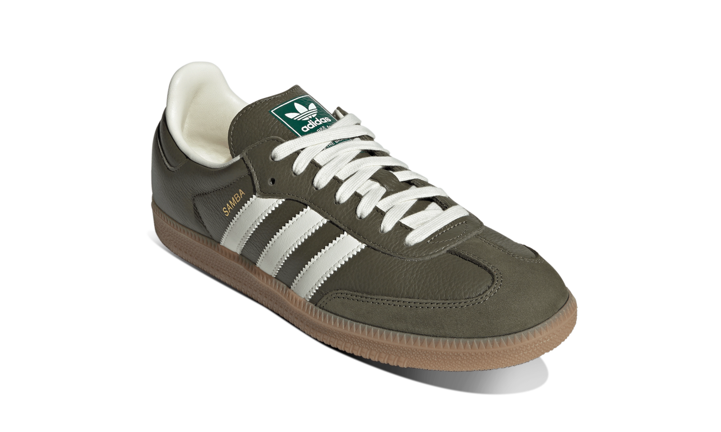 The Adidas Samba OG Medium Raw Khaki Gum maintain the classic essence with a modern touch. With a khaki-toned upper, OG details, and the iconic gum sole, they combine retro style and versatility for everyday wear.