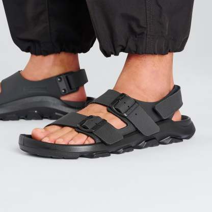 The Mogami Terra sandal takes the outdoor collection even further. Feel comfortable to explore on a waterproof contoured footbed with added toe protection. Featuring a rugged PU sole directly attached to the footbed, this trail-ready style is designed to last, with greater durability, flexibility and all-terrain grip. In Birko-Flor® that's as smooth as it is easy to clean. Go off the beaten path.