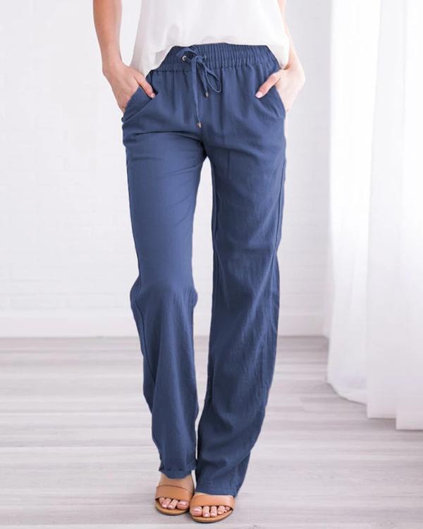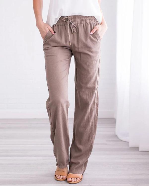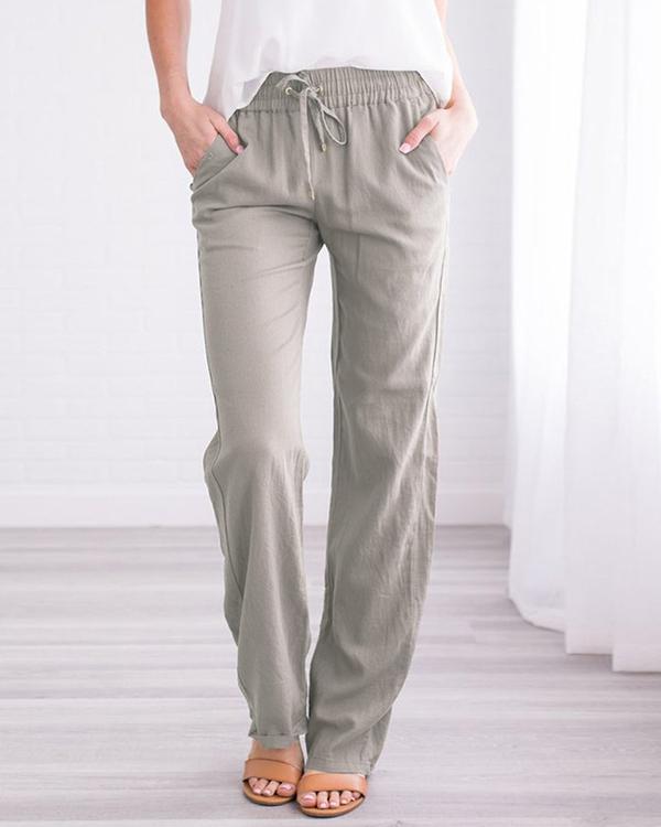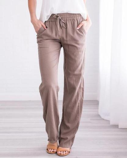 Category:Pants Material:Cotton Linen Style:Casual Type:Straight Pattern Type:Solid Decoration:Pockets Waist Type:Mid Waist Closure Type:Drawstring Waist Season:Spring,Summer Package included: 1 *? Pants Note Due to the difference between different monitors, the picture may not reflect the actual color of the item.